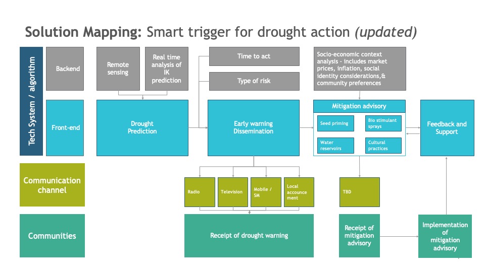The consultant was commissioned to develop three to five paper-based DRR prototypes integrating indigenous knowledge with modern technology. These prototypes will support future usability and desirability testing with agro-pastoralist communities. Collaboration with the IRC’s Airbel User-Centered Design Advisor and Climate Advisor ensured alignment with strategic DRR goals.